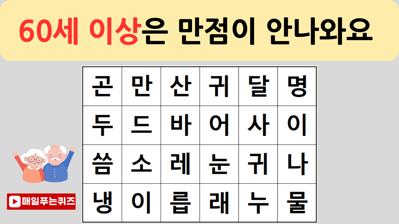 간단한 두뇌퀴즈 풀면서 치매예방을 해보세요.
